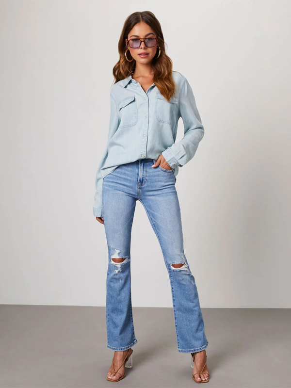 Trend-staple, wardrobe-keeper. This casual denim button up is great for any season.