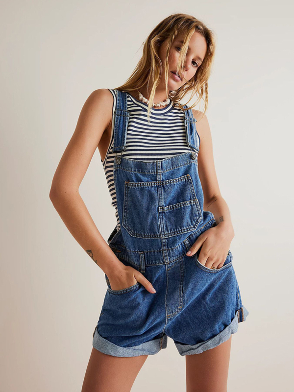 Multi-Pocket short overals for a relaxed look.