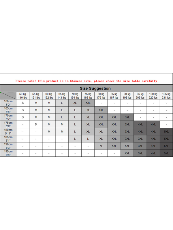 | 5XL | 48 | 52 | 31 | 49 | 20 | 10 |