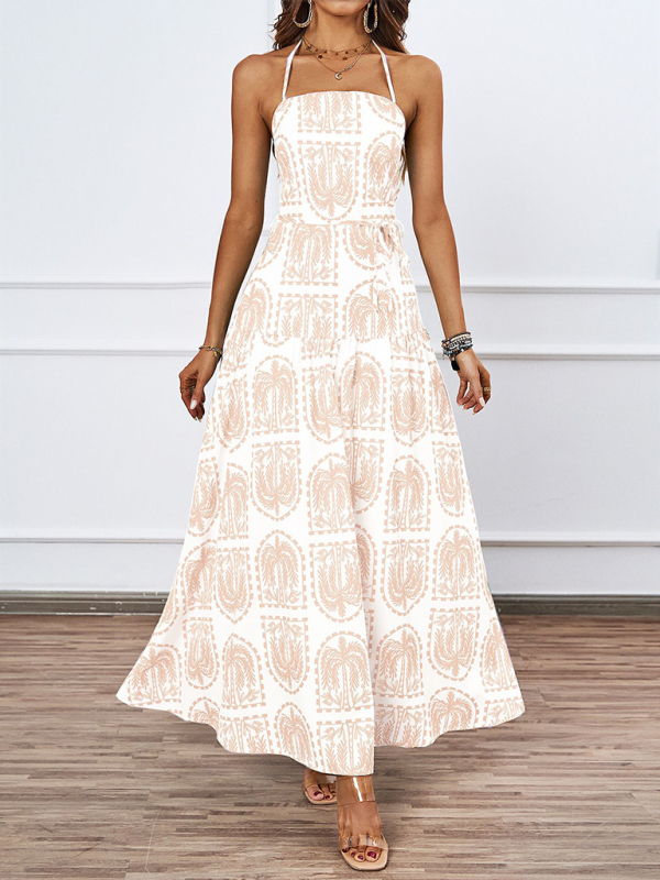 Va-Va-Voom, this maxi dress flows gracefully and features palm trees all over.